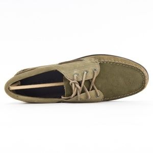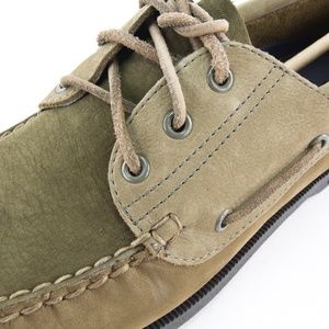 Sperry x J. Crew 3 Eye Leather Boat Shoe Olive Top Sider Limited $110