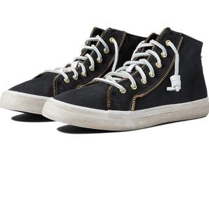 Sperry x Rebecca Minkoff Washed Canvas High Top Sneakers in Black Sz 9.5. Straight off the runway, limited-edition zipper trim design reminiscent of Rebecca Minkoff handbags made for the fashion forward!