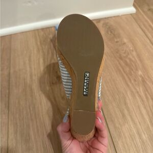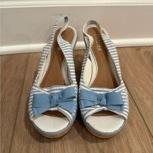Sperry Blue and White Nautical Wedge Sandals with bows
