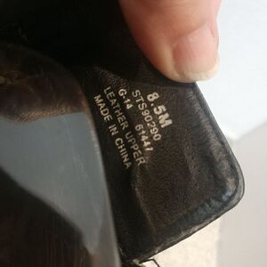 Great pre-owned condition. See pictures for details. Genuine leather. Color looks black in pictures, actually more of a charcoal gray color.