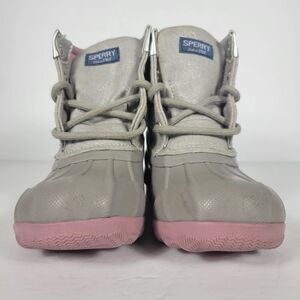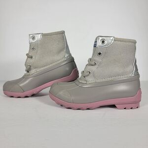 Sperry Port Grey/Pink Waterproof Weather Duck Boots Girls Size 11M