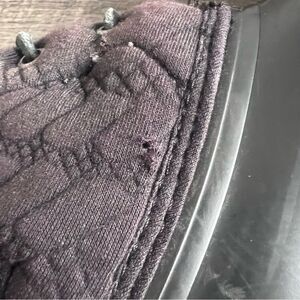 Some wear as shown in photos. Silver ring loose on the base of one shoelace. Tread shows some wear. Small hole in outer layer of fabric - see last photo.