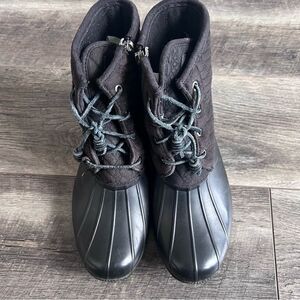 Sperry Saltwater Nylon Quilted Shaft Duck Boots Black Size 8