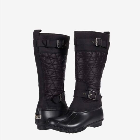 Sperry Saltwater Tall Buckle Nylon Quilt black size 5