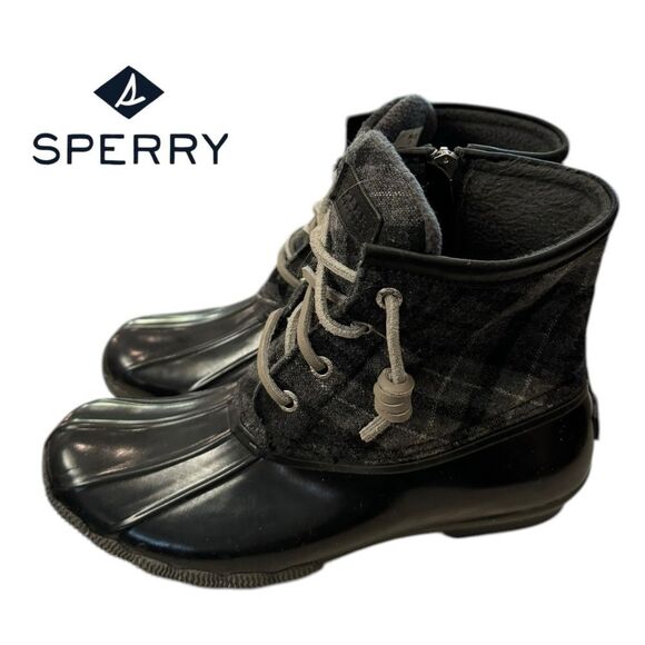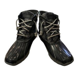 Sperry Top-Sider Women's Black Rubber Plaid Zip Duck Boots STS91005 Sz. 7