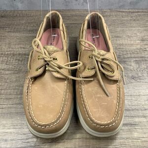 Sperry Top-Sider “Intrepid” Women's Leather~Dot Linen/Gold~Boat Shoes~Size 7.5