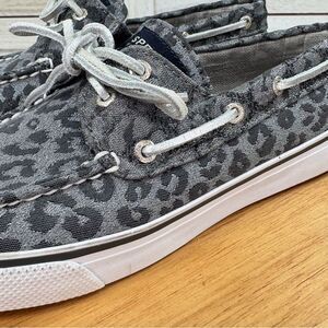 Sperry Topsider Leopard Print Brocade Shimmer Slip On Boat Shoe Loafer Grey 6.5