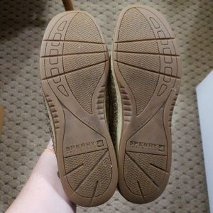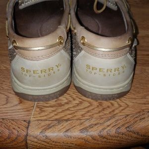 Gently worn Sperrys. SUPER cute neutral w/metallic accent. Non-marking soles. A LOT of life left in these!