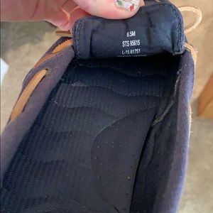 Navy Blue canvas Sperry’s. Gently used condition, they are in amazing shape! They are a bit narrow fitting in the toe.
