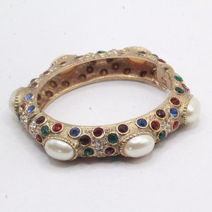 Sphinx Unsigned Runway Couture Multicolor Faux Pearl Pave´ Rhinestones Bangle