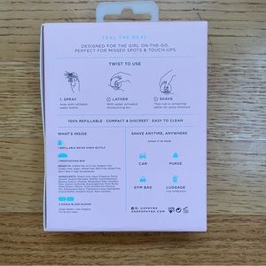 Portable, all-in-one travel razor designed for touch ups and missed spots on-the-go. Stash it in your purse, car, gym bag, travel bag (TSA approved), etc.