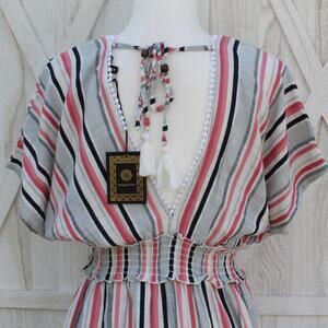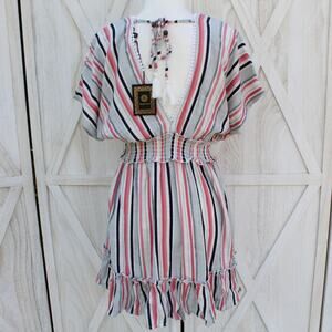 Tags striped smocked ruffled mini casual light weight plunging neckline beach pool vacation cover cruise summer