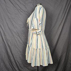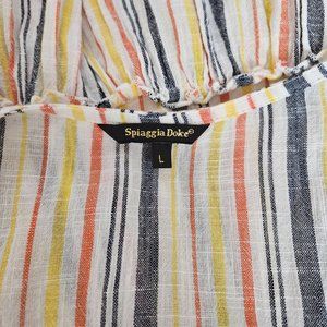 Spiaggia Dolce White Striped Fit & Flare Dress Size L