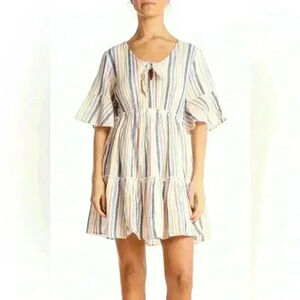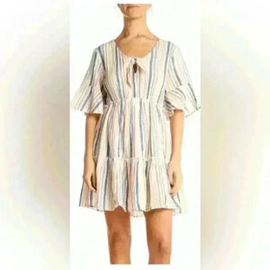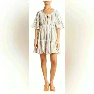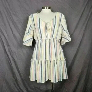Spiaggia Dolce Womens Sz M Ruffled Dress Bell Sleeve Striped
