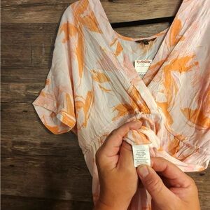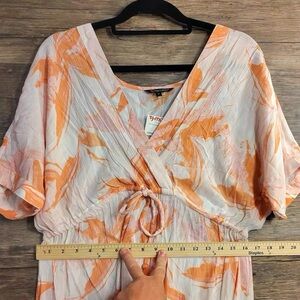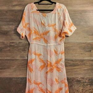 Spiaggia Orange Cream and Pink V-Neck Short Sleeve Maxi Sundress