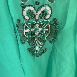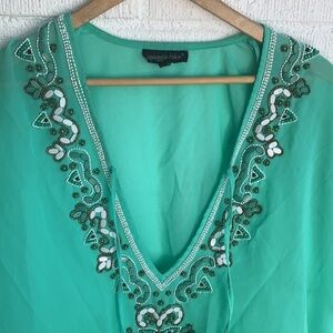 Spiaggia dolce Embroidered Sequins Turquoise Deep V Swim Cover Up sz M