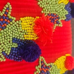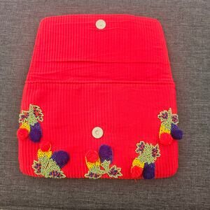 Spice Art Synthetic Red Pom-Pom Seed Bead Clutch Stylish Trend Summer Event. some condition from use as pictured. measurements are approximately: 10 x 6 inches.