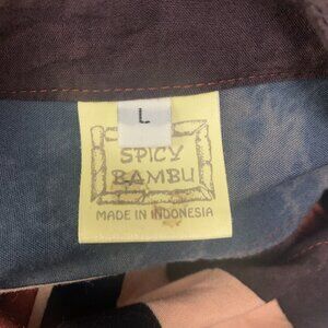 Spicy Bambu Size Large Blouse Multicolor Abstract Print Short Sleeved Button Up