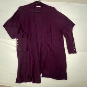 Spicy Sandia Dark Purple Open Front Cardigan with Gold Buttons on Sleeves XL