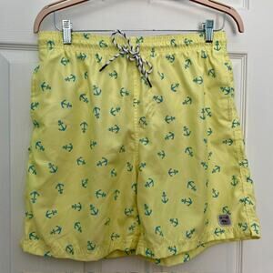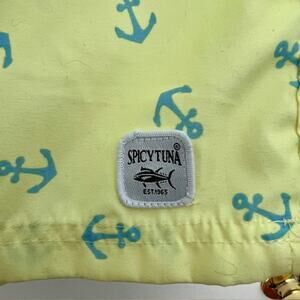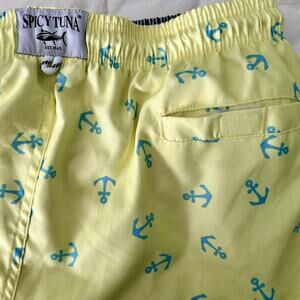 Spicy Tuna Swim Trunks Lined Yellow and Blue Anchor Print