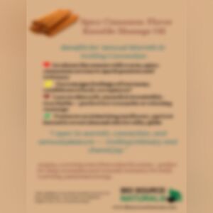 Spicy Cinnamon Flavor Kissable Massage Oil is a bold, sensual blend designed to awaken the senses and inspire intimacy. Made with warming cinnamon bark essential oil and nourishing plant oils, this silky formula glides smoothly without stickiness—ideal for couples’ massage, playful evenings, or bodywork focused on connection and atmosphere.*