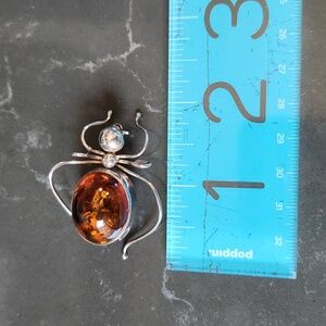 Sterling Silver & Amber Stone spider brooch.