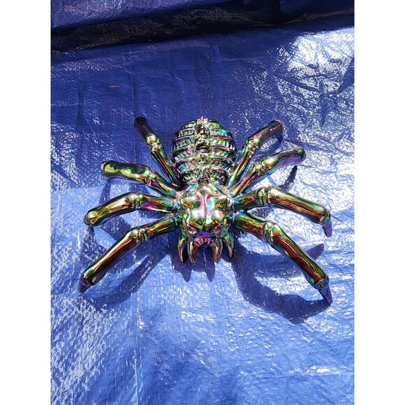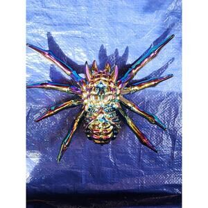 Spider Bug Halloween Decoration Decor 9" Black Iridescent Metal Heavy Weighted