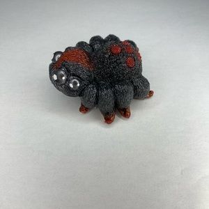 Handmade spider figure perfect for Halloween lover or that loves spiders. It is made with black resin and painted accents red.