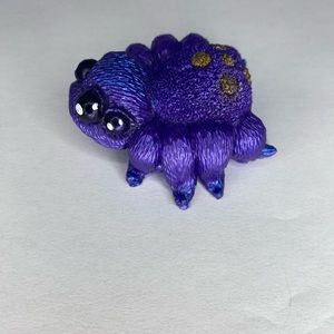 Handmade spider figure perfect for Halloween lover or that loves spiders. It is made with purple resin and painted accents gold