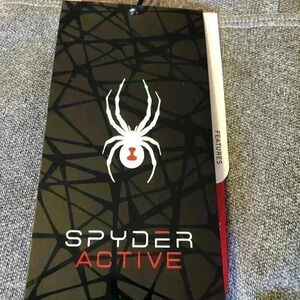Spyder hooded pullover. Red spyder on upper left arm and small hidden pocket on the back near right hip.