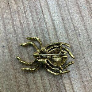 Spider Insect Black Red Rhinestone Gold Tone Brooch Pendant
