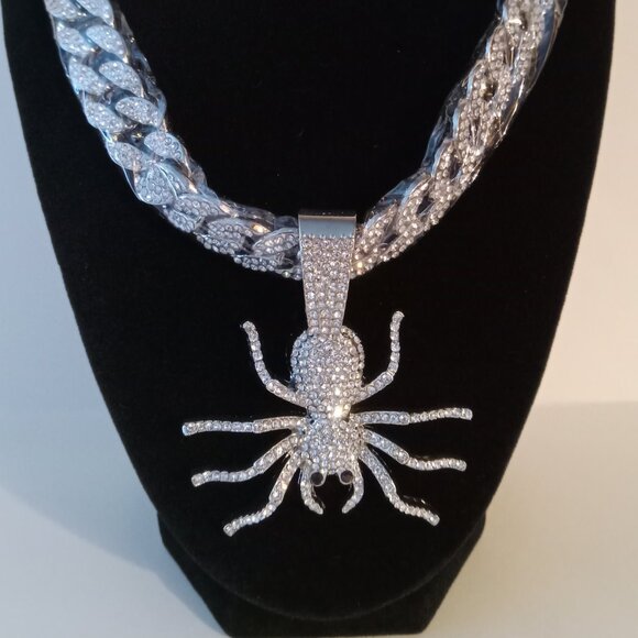 Men or Woman's Spider Pendant with a Cuban Link Chain Necklace. 24 inches
