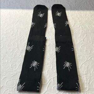 Stylish black socks featuring a spider pattern. Perfect for adding a spooky touch to your outfit.