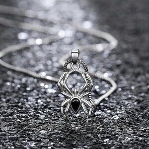 Spider pendant measures about 1 inch long by 0.5 inch wide