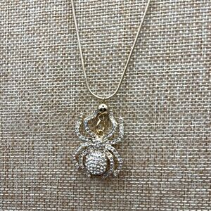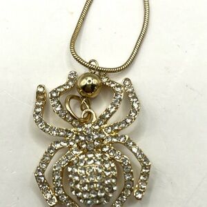 Spider Pendant Gold Tone with Rhinestones. Sparkling Necklace 🕷️ Halloween