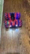 Vibrant red and blue remote control car with matching controller. Features LED lights for a dynamic look.