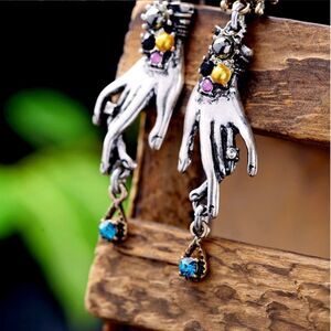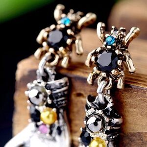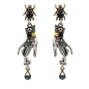 Felling magic.. Absolutely stunning earrings! Very unique and special! Silver hand, blue spider, shining ring, gem bracelets and blue diamond on your ear😃!!!