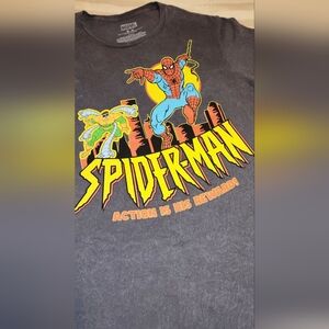 Black Spider-Man graphic t-shirt featuring vibrant comic design.