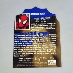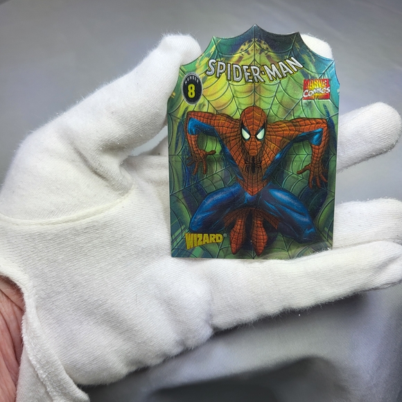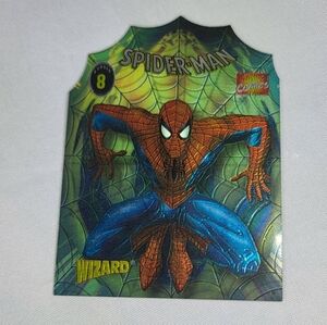 Spider-Man comic card with vibrant colors. Features Spider-Man in action pose.1996 Fleer Skybox Marvel comics.#8 Wizard. Very nice card.