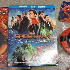 A great bundle of Spiderman items for the Spiderman fan. Marvel Spider-man BOP IT! Spider-Man Hero Hasbro Gaming Game 2021. Works with 2 AAA batteries. There are 3 dvd movies..one with 2 discs. The Spiderman goggles like a child's. Great condition. We have added several cars and figures to add to this great bundle. Check the pictures to see all that is included. The book has several pages cut up but we have included it as an extra to use for whatever.