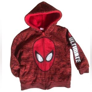 An cool, cozy and warm fully lined Sherpa fleece line hooded jacket. It features a Spider-Man face centered mid-chest; full line zipper; Sherpa fleece lined hood; fleece lined sleeves; and two pockets. Your little one will love the cool factor of this hoodie jacket and you’ll love that they’ll be warm!