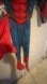 Vibrant red and blue Spider-Man superhero Halloween costume with mask. The mask has small holes in it for the nose and you can see out of the eyes. The rest of the mask you tuck into the costume. The chest is a bit padded and in between the arms and sides there’s a type of wing or web. The bottoms go over your child’s shoes. Was worn only once for Halloween and in perfect condition. My son wore this when he was 9, but he is tall. Perfect for fans, cosplay and Halloween. Size large.