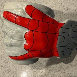 Unique Spider-Man themed mug. Features iconic hand gesture. Perfect for fans and collectors.