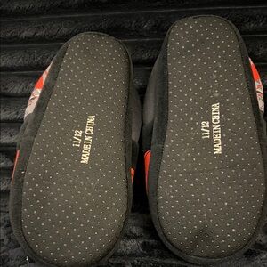Cozy Spider-Man slippers featuring a bold red and black design. Perfect for fans.