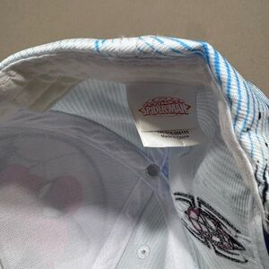 This Spiderman hat showcases a bold blue and red color palette, featuring the superhero in an energetic pose. The light blue crown is adorned with a striking Spiderman graphic, making it a standout accessory for fans. Its comfortable fit and vibrant design make it a must-have for any Spiderman enthusiast.