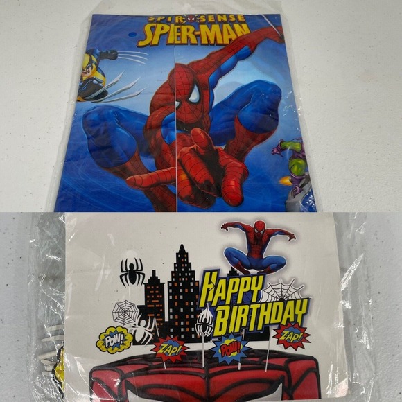 Spiderman Cake Cupcake Toppers Table Cover Happy Birthday Decorations Party