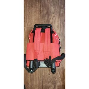 Ultra cute mini toddler backpack on wheels has extention handle 2 outside zippered pockets.