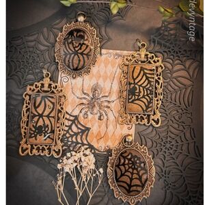 Handmade item- antique bronze colored pendant with a encased faux spiderweb