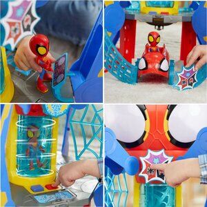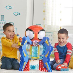 Little hands with big imaginations will enjoy this Marvel Spidey and His Amazing Friends Web-Spinners Web-Quarters toy set! Inspired by the hit preschool show, kids will have hours of heroic fun with multiple play zones with super hero action features, and 360-degree play. Defeat Zola, the newest baddie in town by placing included Spidey figure and toy car and speeding to the rescue! Playset also lights up with 50 sounds and phrases for an interactive, immersive experience for Spidey's littlest fans. Marvel toys for 3 year old boys and girls and up make great kids gifts.