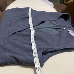 Effortless sophistication! This sleeveless charcoal gray sheath dress features a flattering V-neck wrap-style bodice, a defined waistband, and tailored darts for a sleek silhouette and small slit in the back hem. Fully lined, Back zippered closure. Perfect for work, meetings, or formal occasions. NWT. See photos for measurements to ensure proper fit.